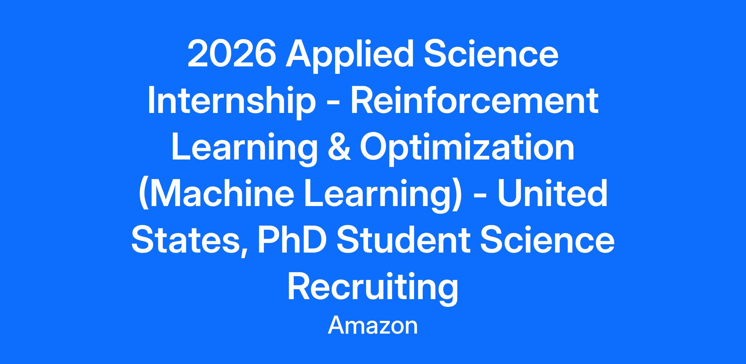 Amazon has positions available for Machine Learning Applied Science Internships in, but not limited to Arlington, VA; Bellevue, WA; Boston, MA; New York, NY; Palo Alto, CA; San Diego, CA; Santa Clara, CA; Seattle, WA.