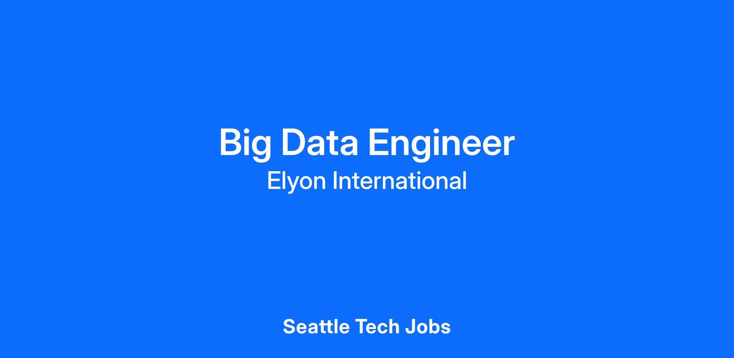 We are seeking skilled and experienced Big Data Engineer to join our team!