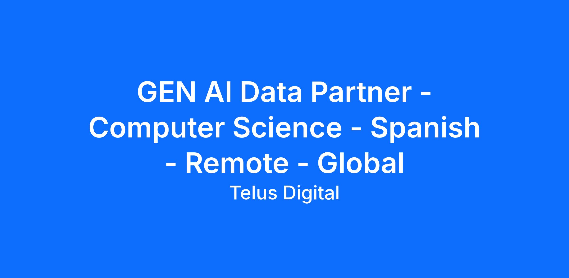 GEN AI Data Partner - Computer Science - Spanish - Remote - Global