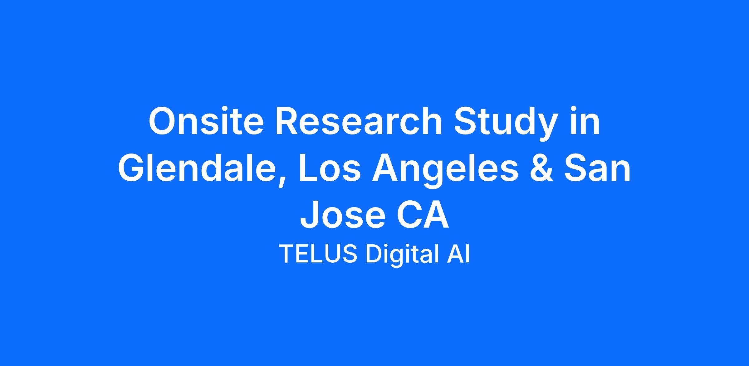 Onsite Research Study in Glendale, Los Angeles & San Jose CA