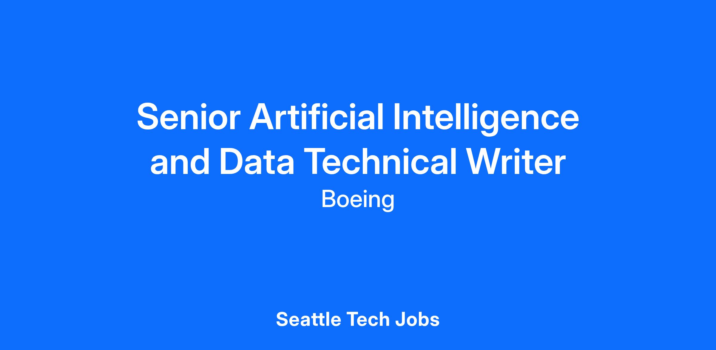 The Boeing CompanyThe Boeing Company is currently seeking a Senior Artificial Intelligence and Data Technical Writer to join the team in Seattle, WA; Chicago, IL; Everett, WA; Mesa, AZ; North Charleston, SC; Ridley Park, PA; Pleasanton, CA; Renton, WA; Berkeley, MO; Arlington, VA; El Segundo, CA or Long Beach, CA.