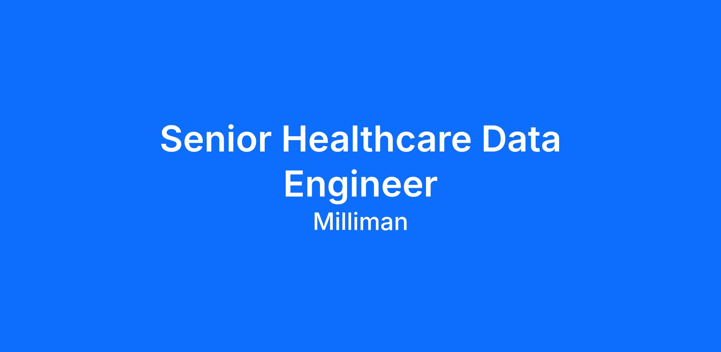 Milliman's Seattle Health Practice is looking for an experienced data professional to join our VRDC analytics team. In this role, you will develop and maintain data pipelines that process healthcare claims and enrollment data; implement measure logic and business rules from CMS and industry specifications; and contribute to the ongoing improvement of our analytic codebases and data products.