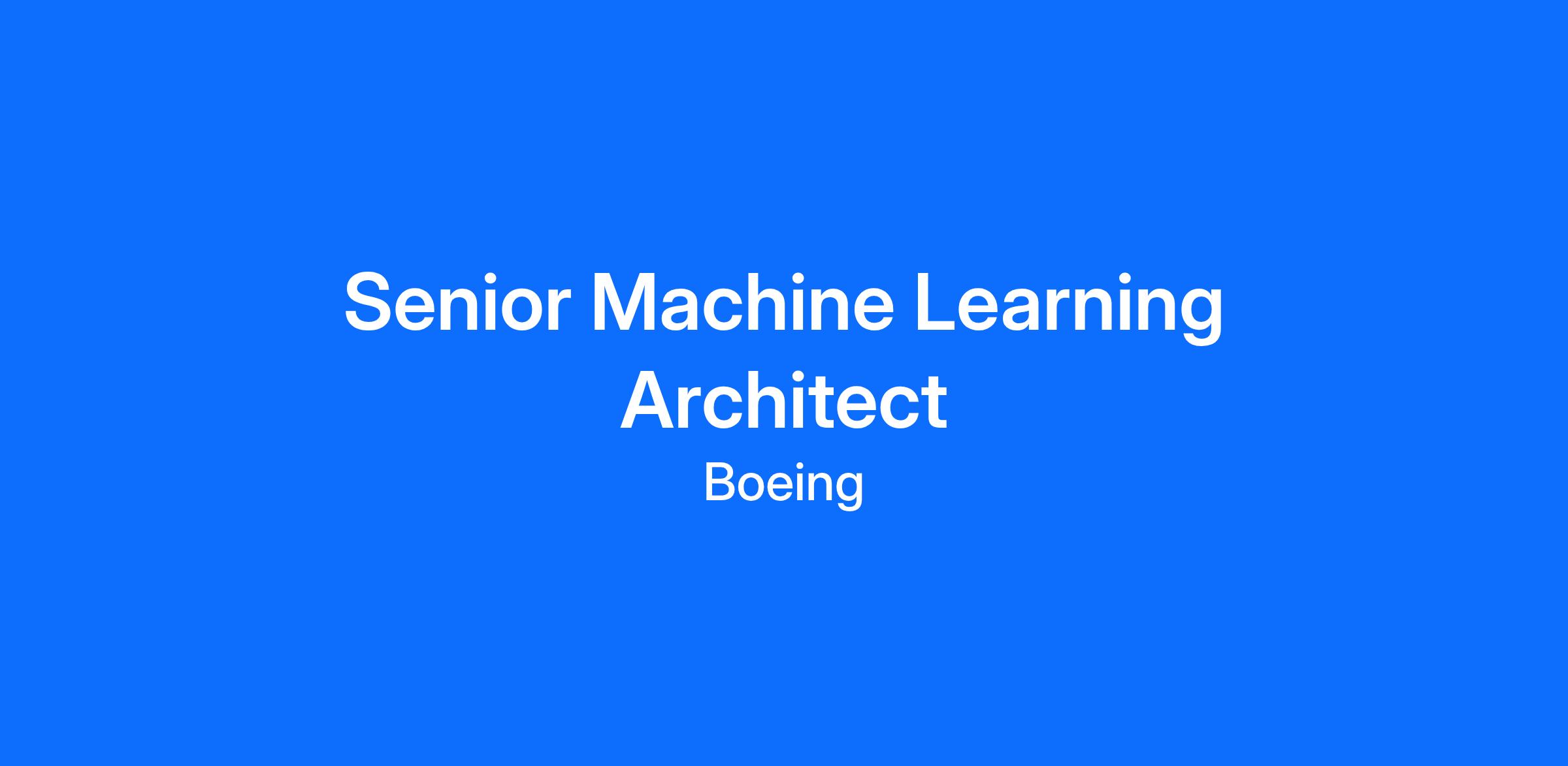 The Boeing CompanyThe Boeing Company is currently seeking a Senior Machine Learning Architect to join the team in Seattle, WA; Arlington, VA; Auburn, WA; Berkeley, MO; Chicago, IL; Colorado Springs, CO; El Segundo, CA; Englewood, CO; Everett, WA; Hazelwood, MO; Houston, TX; Huntington Beach, CA; Huntsville, AL; Kent, WA; Long Beach, CA; Mesa, AZ; Miami, FL; North Charleston, SC; Plano, TX; Portland, OR; Renton, WA; Ridley Park, PA; Saint Charles, MO; San Antonio, TX; Seal Beach, CA; Titusville, FL; or Tukwila, WA.