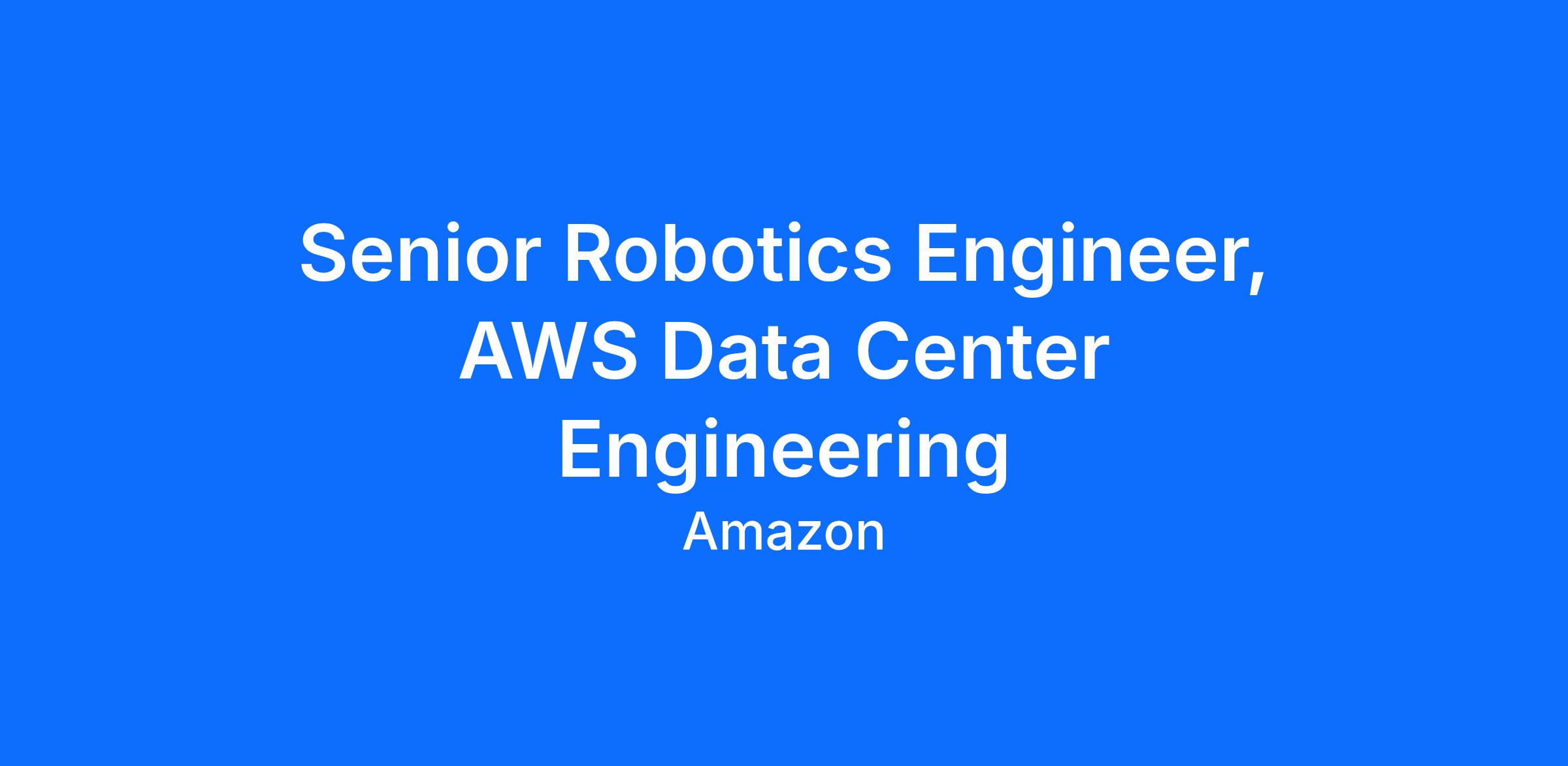 Within AIS and Data Center Engineering, the Robotics Products and Services team is growing in maturity, so now is the time to join and drive game changing and rapid innovation used by AWS globally. Our designs will fundamentally change the data center, providing operational and financial benefits that are critical to the success of the AWS business and its millions of customers. Our engineers solve challenging technology problems and take big bets on new concepts, enabling AWS services to continue to revolutionize the industry. This role provides the opportunity to be a robotics engineer and the technical lead driving the innovations being developed and deployed in the next generation data centers.