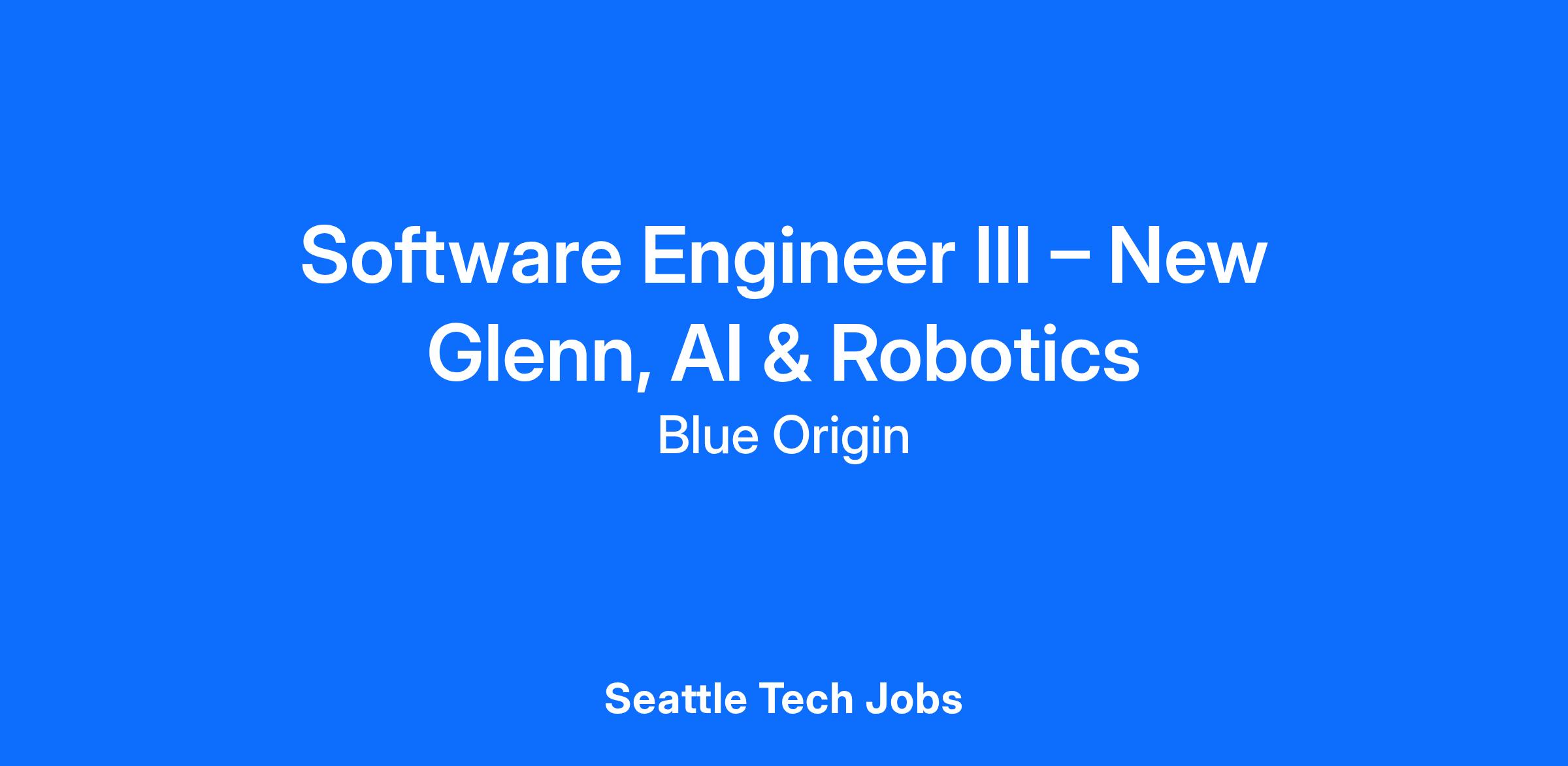 This role supports the development and operations of New Glenn, a single-configuration, heavy-lift orbital launch vehicle capable of routinely carrying people and payloads to low-Earth orbit, geostationary transfer orbit, cislunar, and beyond. Its first stage is fully reusable, and the vehicle was designed from the beginning to be human-capable.As part of a hardworking team of specialists, technicians, and engineers on the AI & Test software team, you will share in the team's impact on all aspects of design, development, and testing of intelligent robotic systems used across Blue Origin's mission operations. You will frequently engage with other development teams from Avionics, Flight Operations, Ground Integration, Engines, and Lunar. Every day, you will innovate to build the frameworks and tools needed to integrate AI-driven solutions that integrate with cyber-physical systems. Your expertise will directly contribute to building autonomous platforms, robotic workflows, and intelligent tooling we need to advance space exploration!