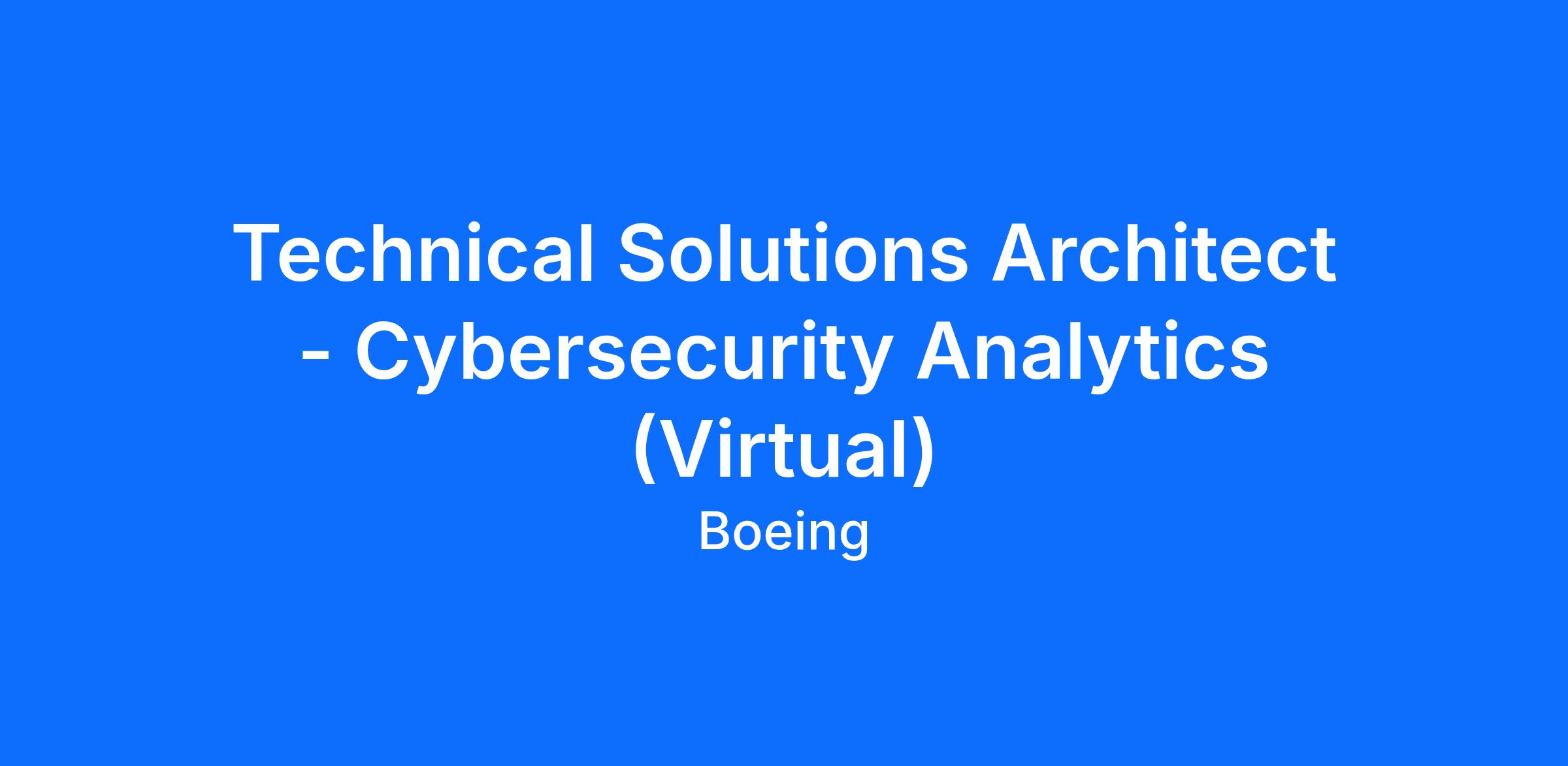 Technical Solutions Architect - Cybersecurity Analytics (Virtual)