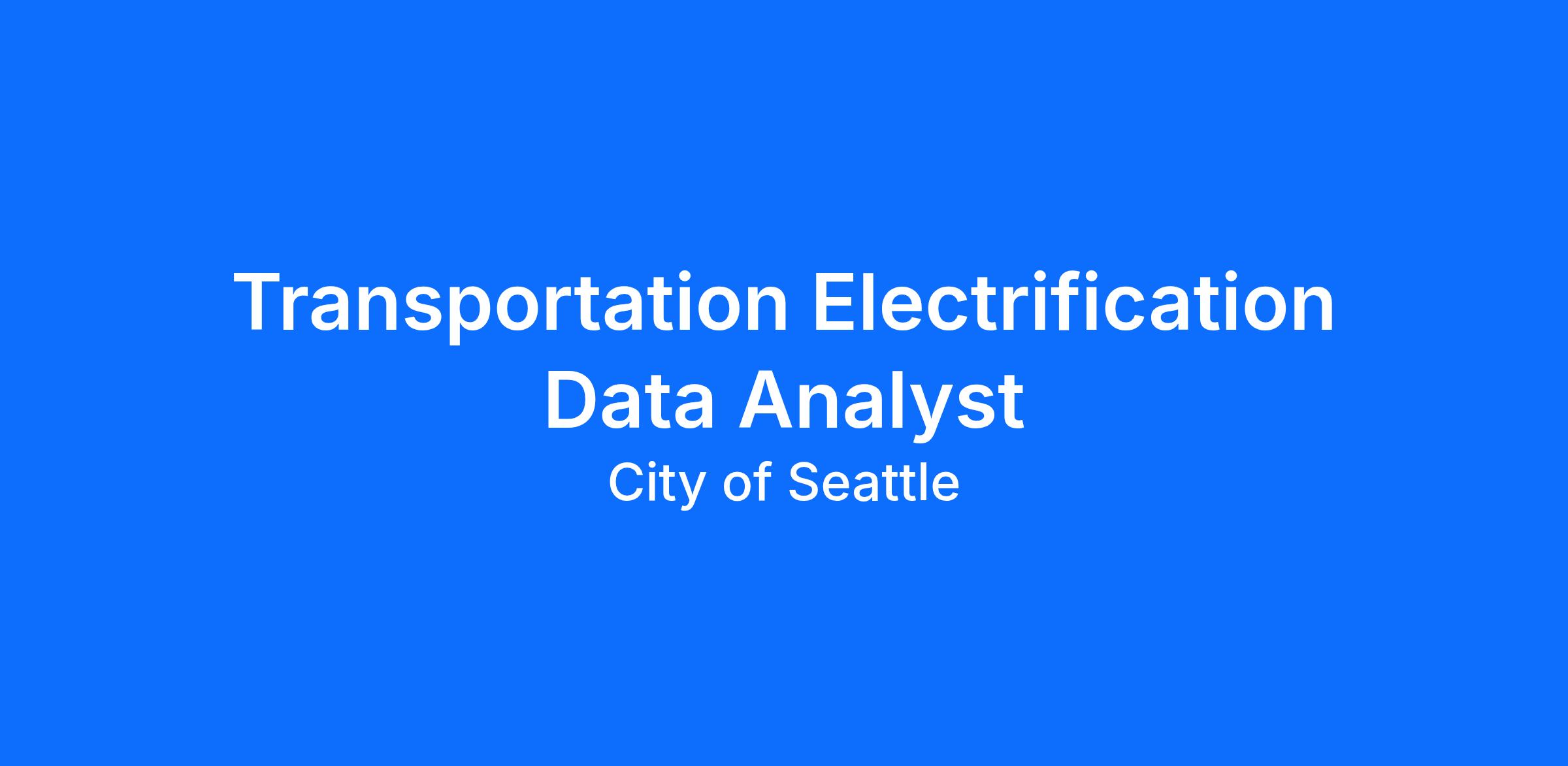 Seattle City Light's Customer Experience Division is hiring a Transportation Electrification Data Analyst to join our growing team. This position will help leverage customer and programmatic data and analytics to support the organization in more efficiently and effectively delivering the products and services our customer desire. The role will be responsible for building usable data tools for staff, as well as, supporting the analysis and evaluation of data sources to support City Light’s Transportation Electrification Strategic Investment Plan; including oversight of the Clean Fuel Standard. The position uses quantitative, data management, and business intelligence techniques to solve analytical business problems, translate data into actionable insights, and communicate finding which help shape the utility’s policies and programs.