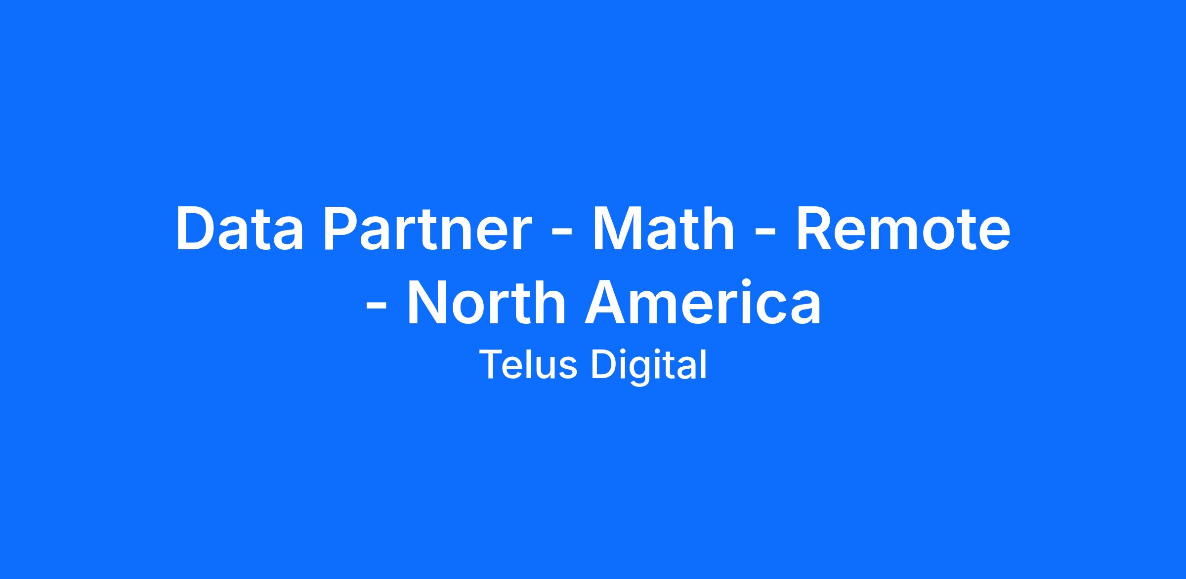 Data Partner - Math - Remote - North America